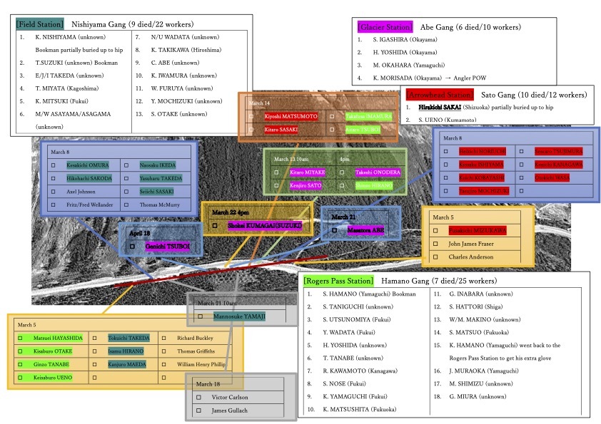Tomo Fujimura has compiled a detailed report of the Japanese victims' recovery locations at the Rogers Pass site. Click image to view the full-size PDF: